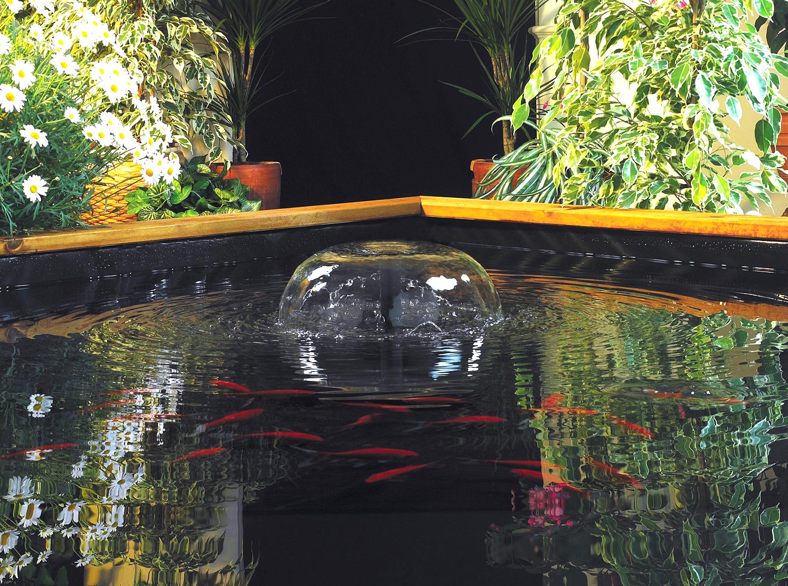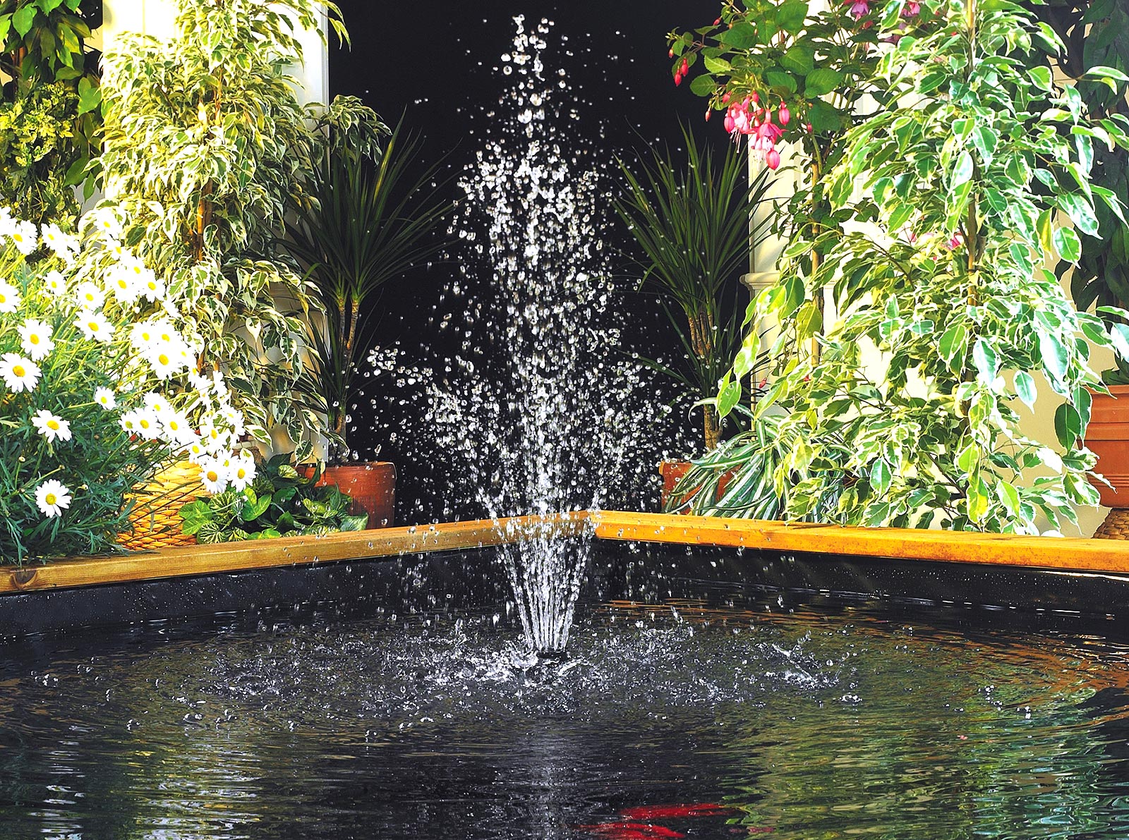 - Fountain – Position the pump off the bottom of the pond with the fountain head above the water level.