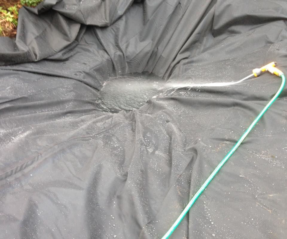 EPDM liner in place and filling up.