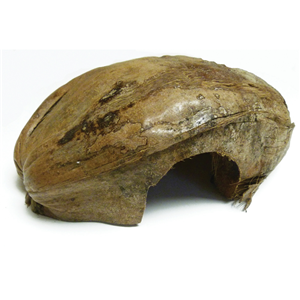 He is a half coconut complete with husk a completely contained little shelter ideal for hatchling snakes up to 1 year, or a cave for young Pacman Fog.