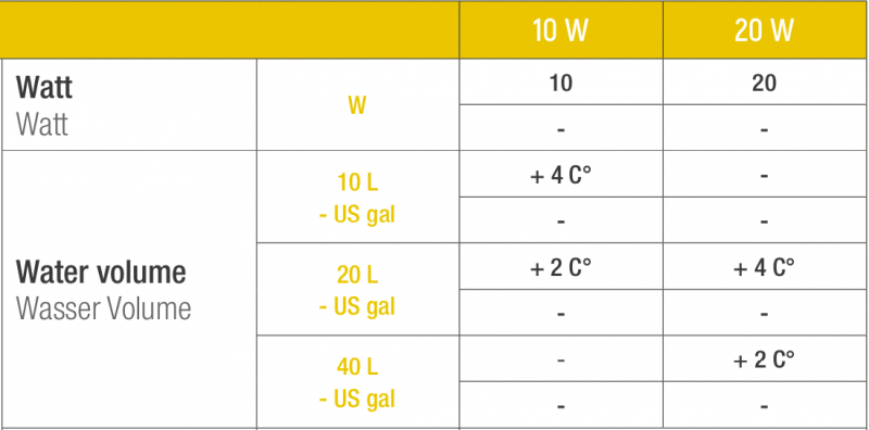 The built-in thermal protection intervenes when the heater isn’t under water, preventing overheating (LED light OFF even if Jolly is plugged in). Performance can vary according to the following parameters: – Quantity of water – Room temperature – Open or closed tank
