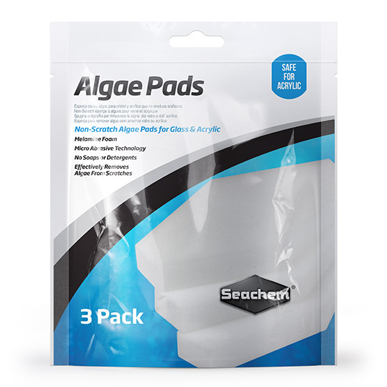 The Seachem Algae Pads are non-scratch algae pads for glass & acrylic. The melamine foam uses micro abrasive technology to easily remove algae from the sides of your aquarium. They are particularly effective at removing algae from scratches. They are chemically inert and do not use soaps or detergents. Their white colour contrasts against dark algae making it easier to see when areas are fully clean.